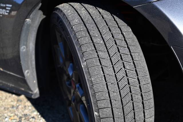 低温でも硬くならない特殊なゴムと、深い溝(サイプ)が特徴です。